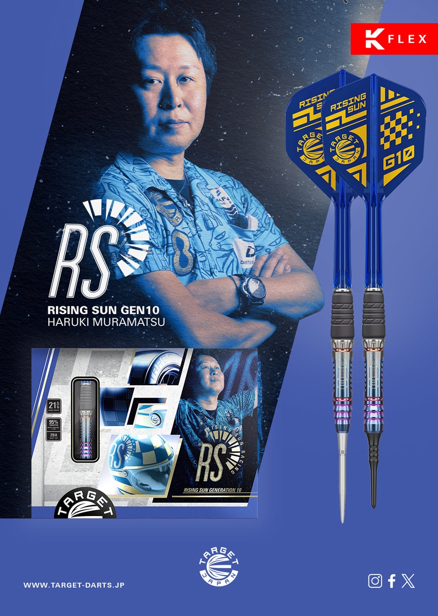 The "RISING SUN" series is now in its 10th generation. Inspired by the design of formula cars, Haruki Muramatsu and the RISING SUN G10 have combined the aesthetics of formula cars into a darts design model.